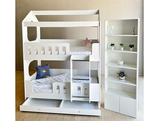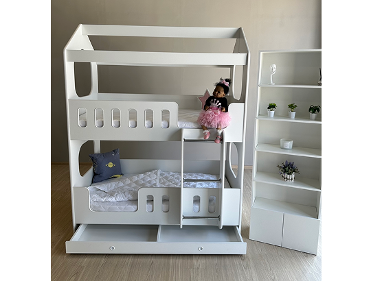 Материал: ЛДСП высшего качества Класс Е1 для детской мебели Кровать отделана и защищена мягким т-образным кантом ПВХ по всему периметру