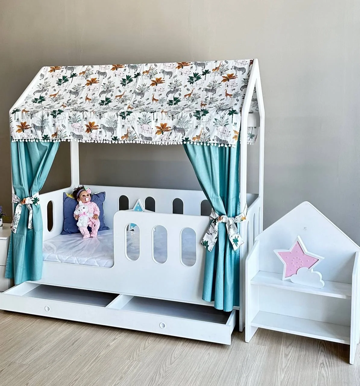 Кровать Домик Премиум класс Высокий Борт с Ящиком с Матрасом 160*80